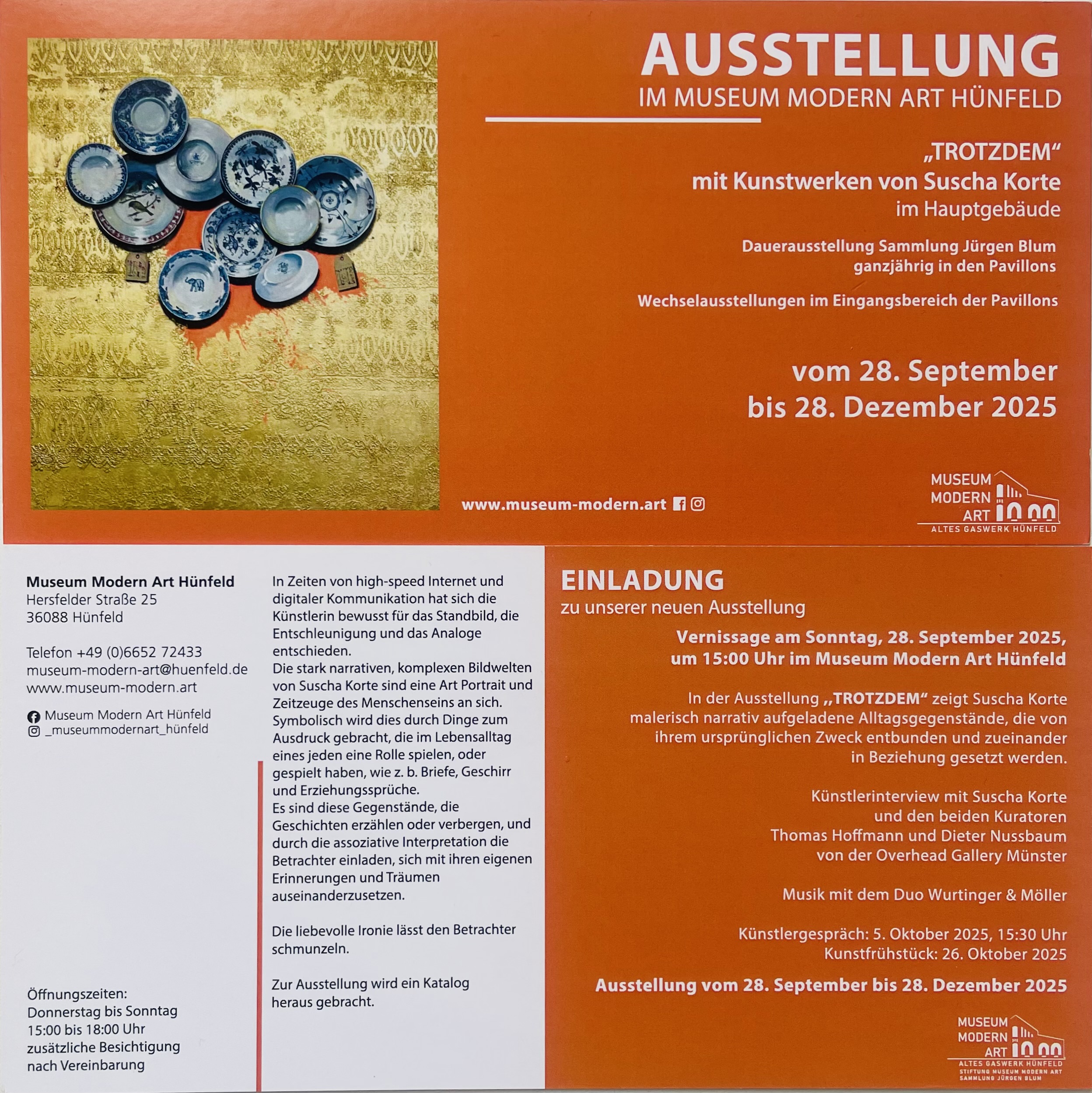 Die Ausstellung ist eine Hommage an das analoge, das echte Leben, das die physische Präsenz, die direkte Konfrontation und den unmittelbaren Dialog bedingt. Gleichzeitig ist der Ausstellungstitel als Appell an Courage, Mut, Zuversicht und die aktive Auseinandersetzung mit Phänomenen und Problemen unsere Zeit zu verstehen. Die Malerei dient hier als Medium für innere Einkehr und äußeren Aufbruch. Und liefert damit ein nachhaltiges Argument gegen Passivität, Fremdbestimmung und dystopische Resignation, ein ”Trotzdem…”